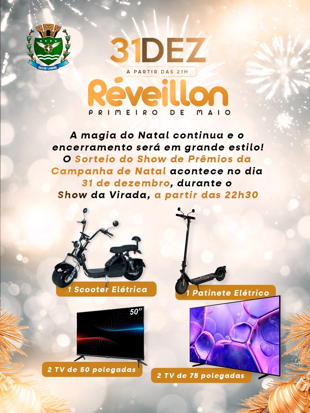 ✨ A virada do ano em Primeiro de Maio vai ser inesquecível! ✨